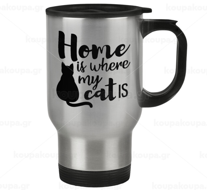 Home is where my cat is!, Stainless steel travel mug with lid, double wall 450ml