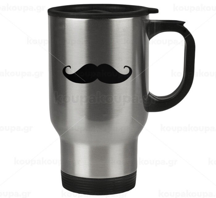 moustache, Stainless steel travel mug with lid, double wall 450ml