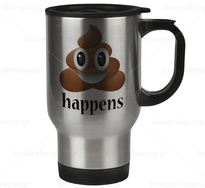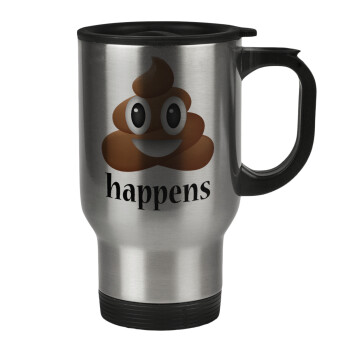 Shit Happens, Stainless steel travel mug with lid, double wall 450ml