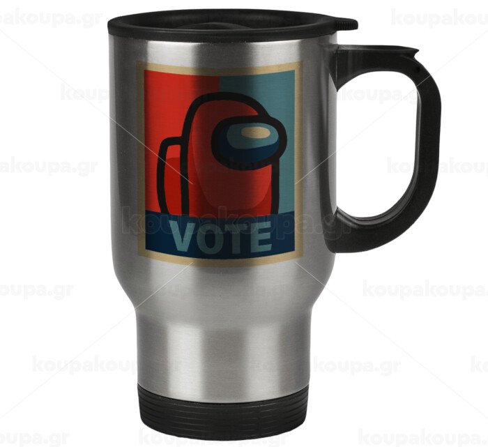 Among US VOTE, Stainless steel travel mug with lid, double wall 450ml