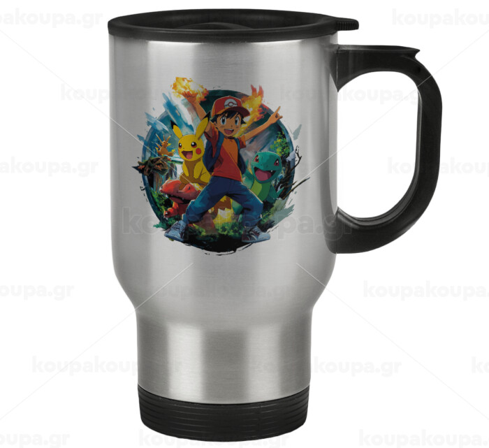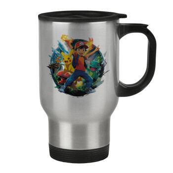 Ash Ketchum & Pikachu, Stainless steel travel mug with lid, double wall 450ml