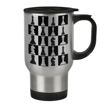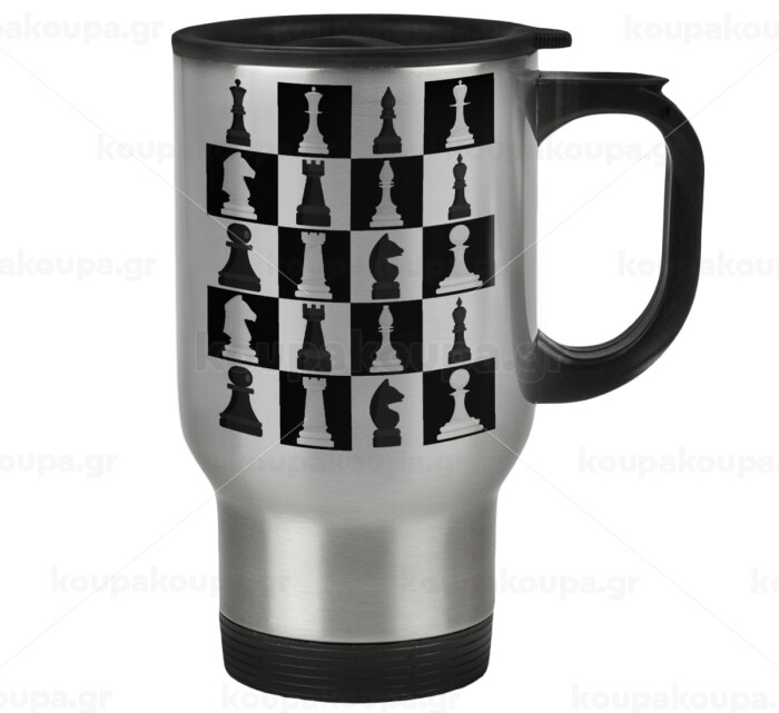 Chess set, Stainless steel travel mug with lid, double wall 450ml