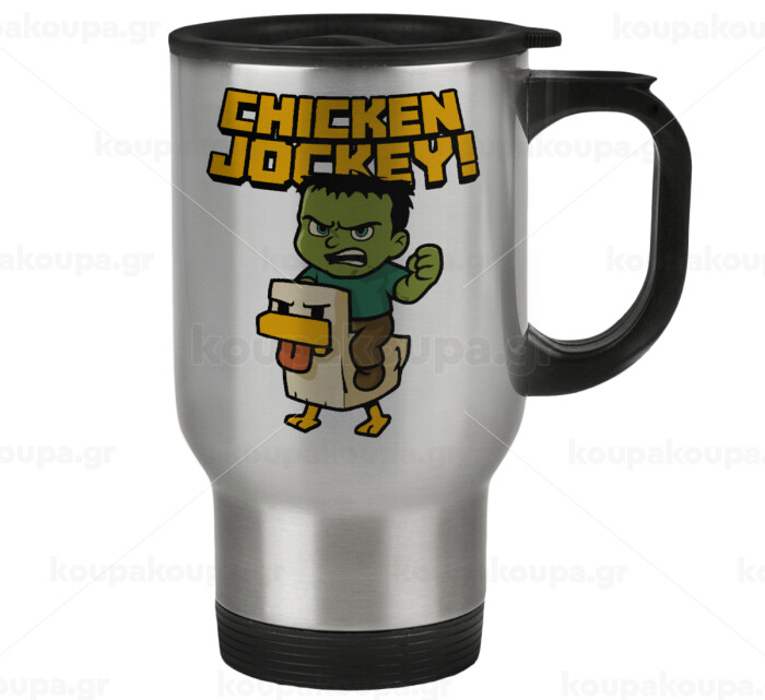 Chicken Jockey, Stainless steel travel mug with lid, double wall 450ml