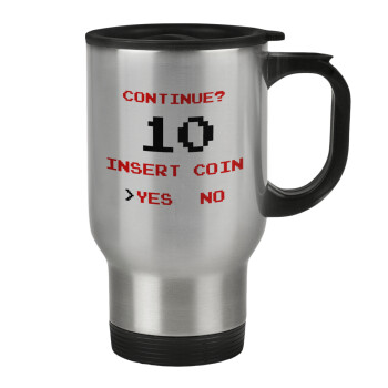 Continue? YES - NO, Stainless steel travel mug with lid, double wall 450ml