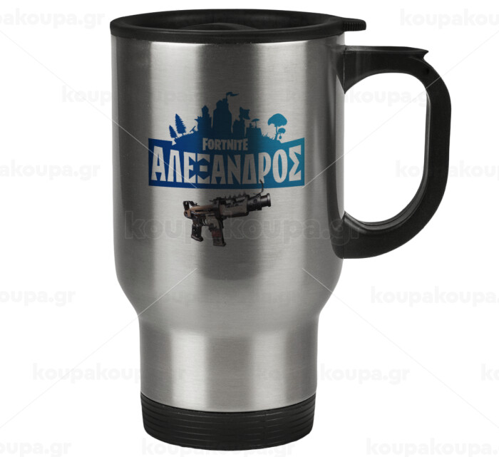 Fortnite with gun με το όνομα σου, Stainless steel travel mug with lid, double wall 450ml