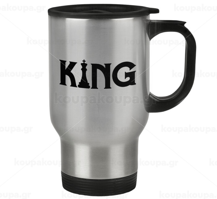 King chess, Stainless steel travel mug with lid, double wall 450ml