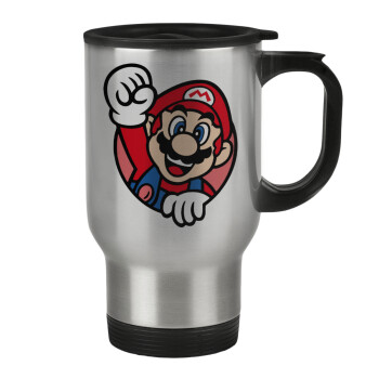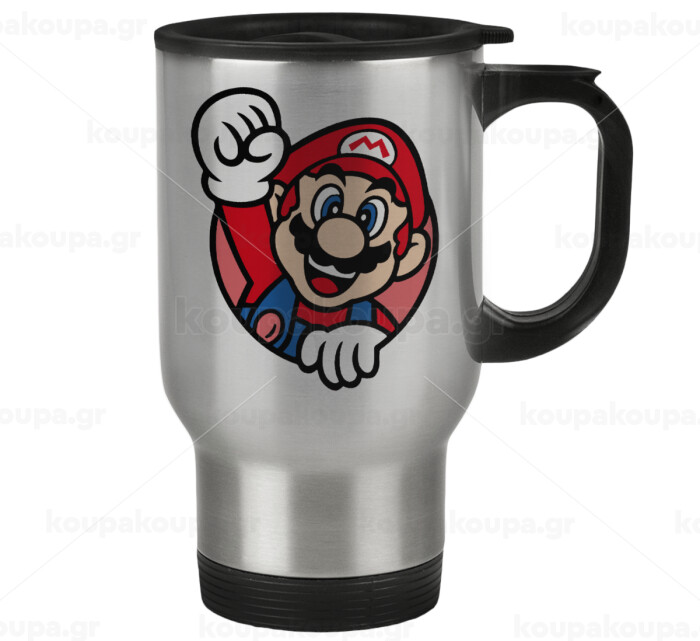 Super mario win, Stainless steel travel mug with lid, double wall 450ml