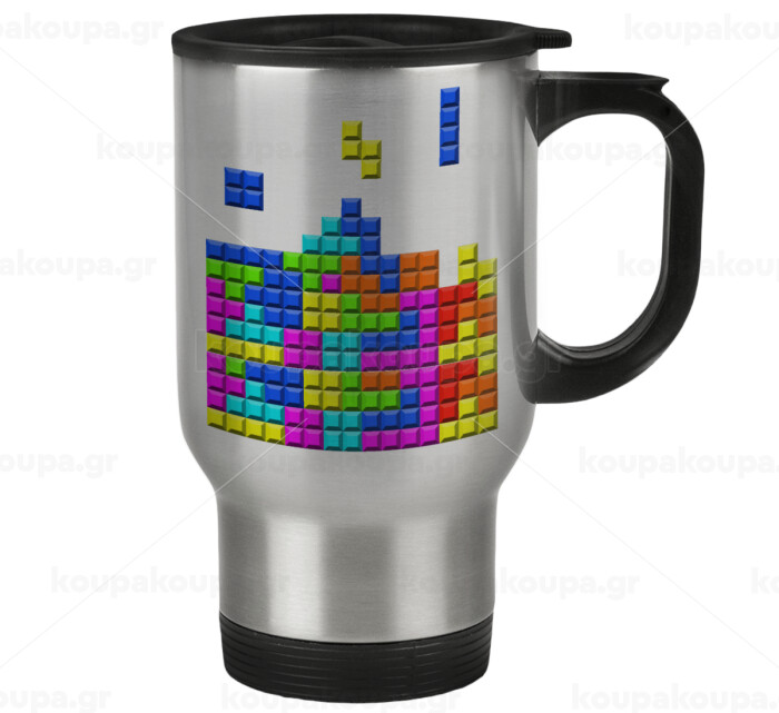 Tetris blocks, Stainless steel travel mug with lid, double wall 450ml
