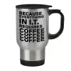 Because everything in I.T. requires coffee, Stainless steel travel mug with lid, double wall 450ml