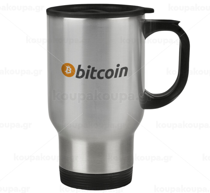 Bitcoin Crypto, Stainless steel travel mug with lid, double wall 450ml