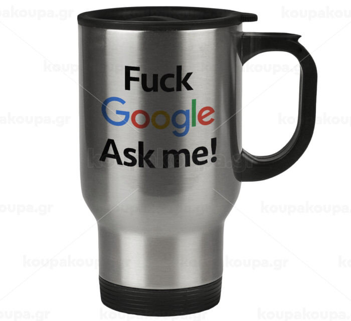 Fuck Google, Ask me!, Stainless steel travel mug with lid, double wall 450ml