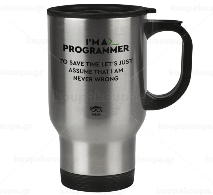I’m a programmer Save time, Stainless steel travel mug with lid, double wall 450ml