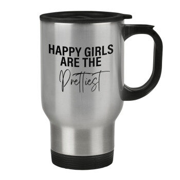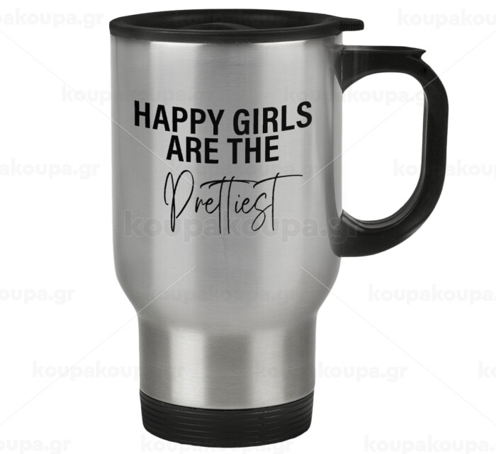 Happy girls are the prettiest, Stainless steel travel mug with lid, double wall 450ml