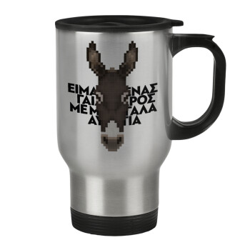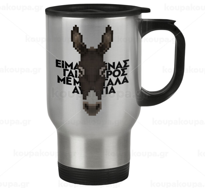 Είμαι ένας γάιδαρος με μεγάλα αυτιά., Stainless steel travel mug with lid, double wall 450ml