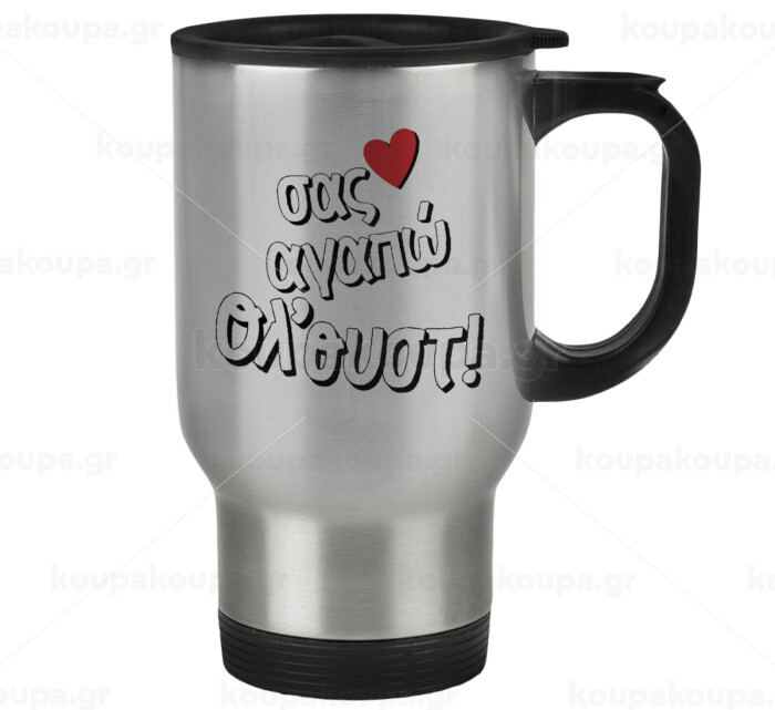 Σας αγαπώ όλ'ουστ!, Stainless steel travel mug with lid, double wall 450ml