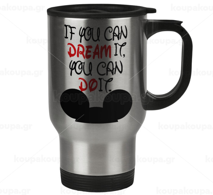 If you can dream it, you can do it, Stainless steel travel mug with lid, double wall 450ml