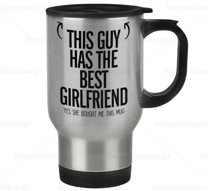 This guy has the best Girlfriend, Stainless steel travel mug with lid, double wall 450ml