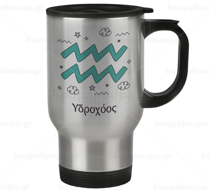 Ζώδια Υδροχόος, Stainless steel travel mug with lid, double wall 450ml