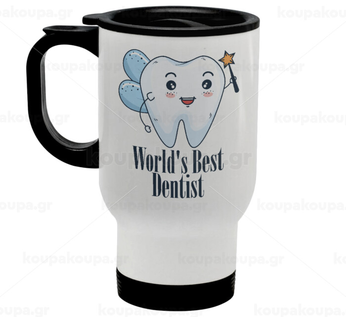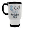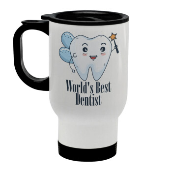 World's Best Dentist, Stainless steel travel mug with lid, double wall white 450ml
