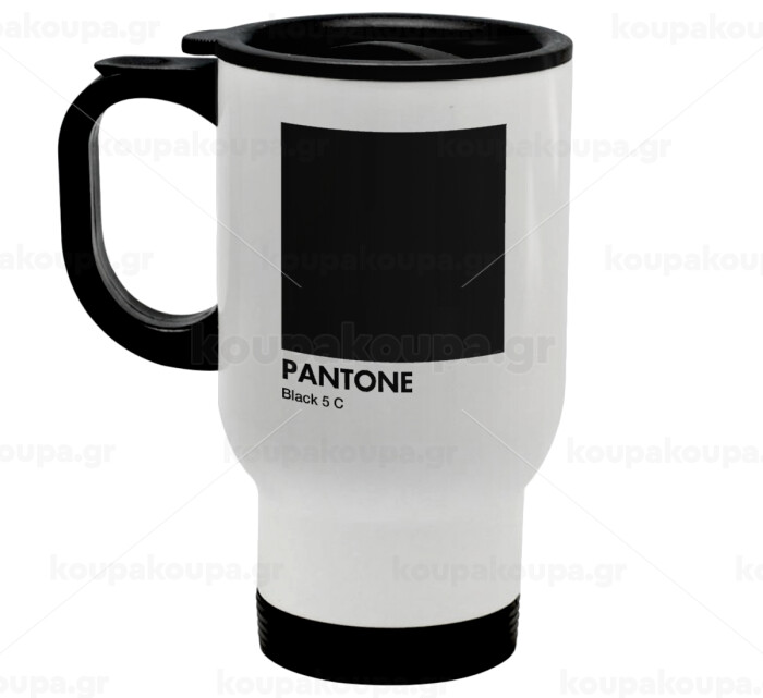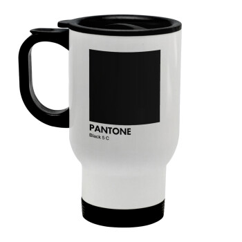 Pantone Black, Stainless steel travel mug with lid, double wall white 450ml