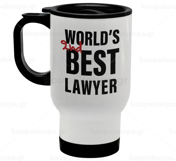2nd, World Best Lawyer , Stainless steel travel mug with lid, double wall white 450ml
