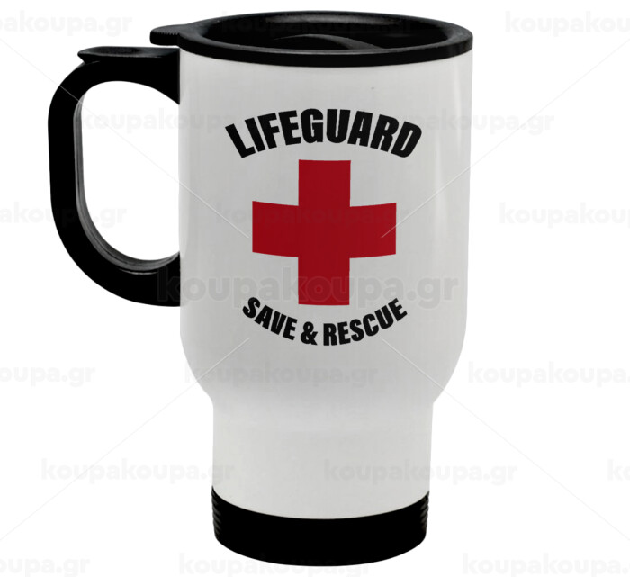 Lifeguard Save & Rescue, Stainless steel travel mug with lid, double wall white 450ml