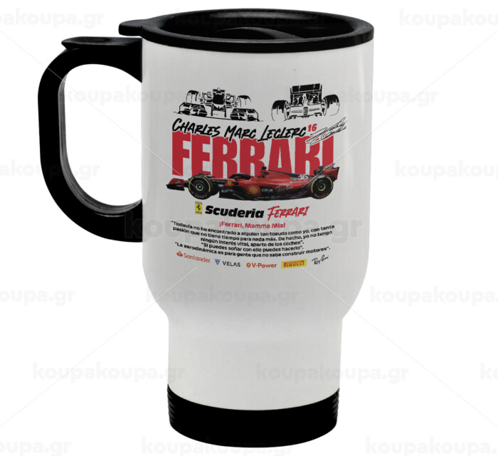 F1 Ferrari, Stainless steel travel mug with lid, double wall white 450ml