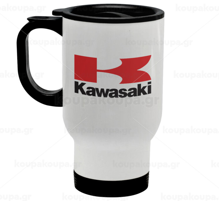 Kawasaki, Stainless steel travel mug with lid, double wall white 450ml