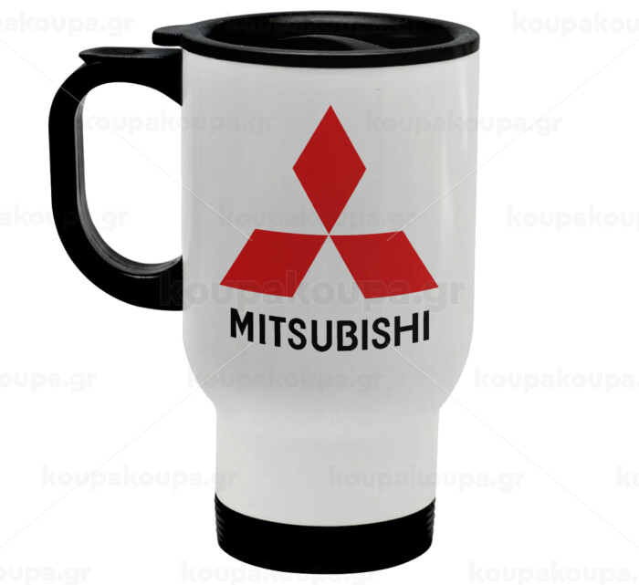mitsubishi, Stainless steel travel mug with lid, double wall white 450ml