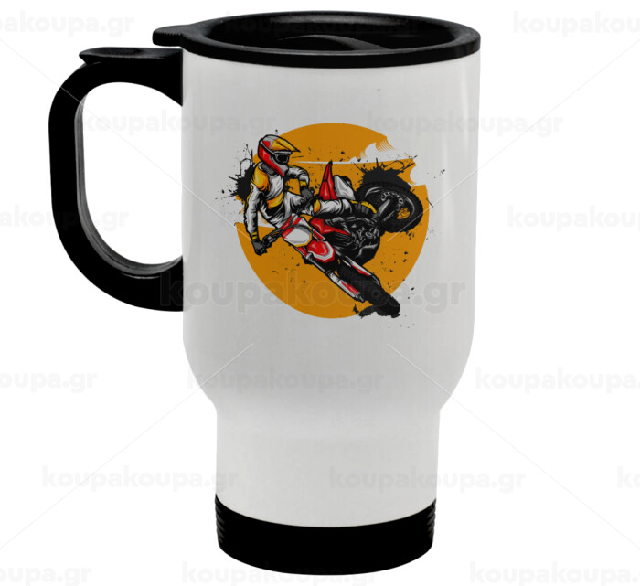 Motocross, Stainless steel travel mug with lid, double wall white 450ml