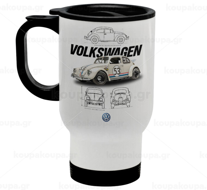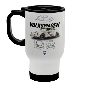 Volkswagen Beetle, Stainless steel travel mug with lid, double wall white 450ml