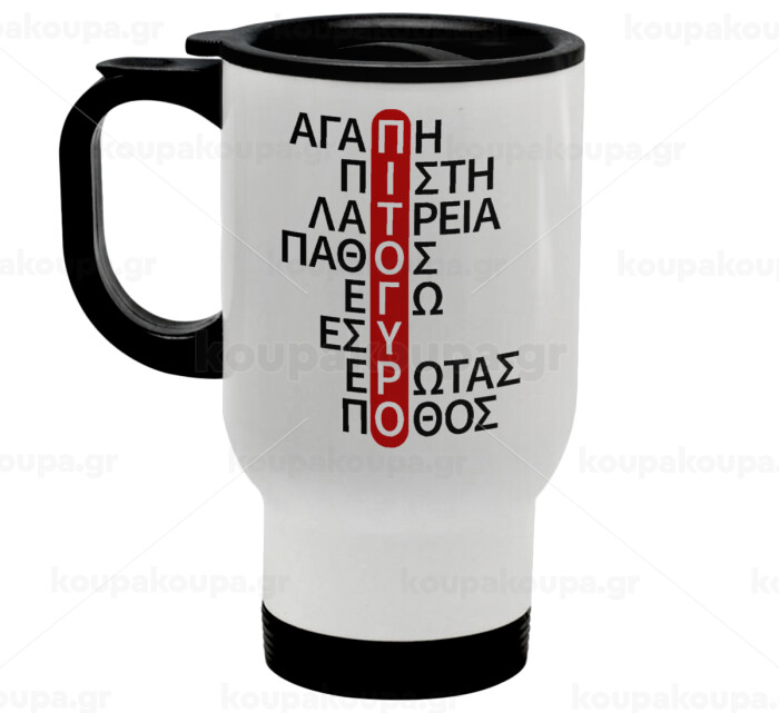 Πιτόγυρο πόθος, Stainless steel travel mug with lid, double wall white 450ml
