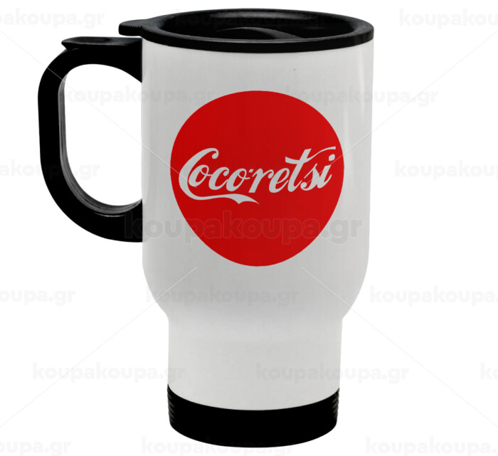 Cocoretsi, Stainless steel travel mug with lid, double wall white 450ml