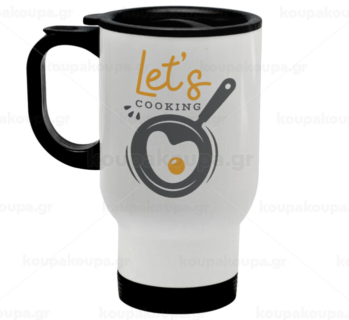 Let's cooking, Stainless steel travel mug with lid, double wall white 450ml