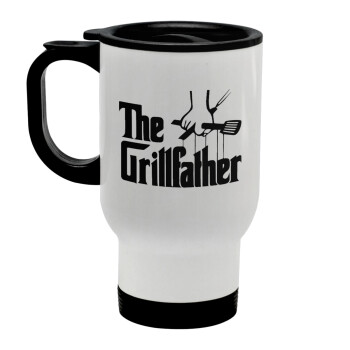 The Grillfather, Stainless steel travel mug with lid, double wall white 450ml
