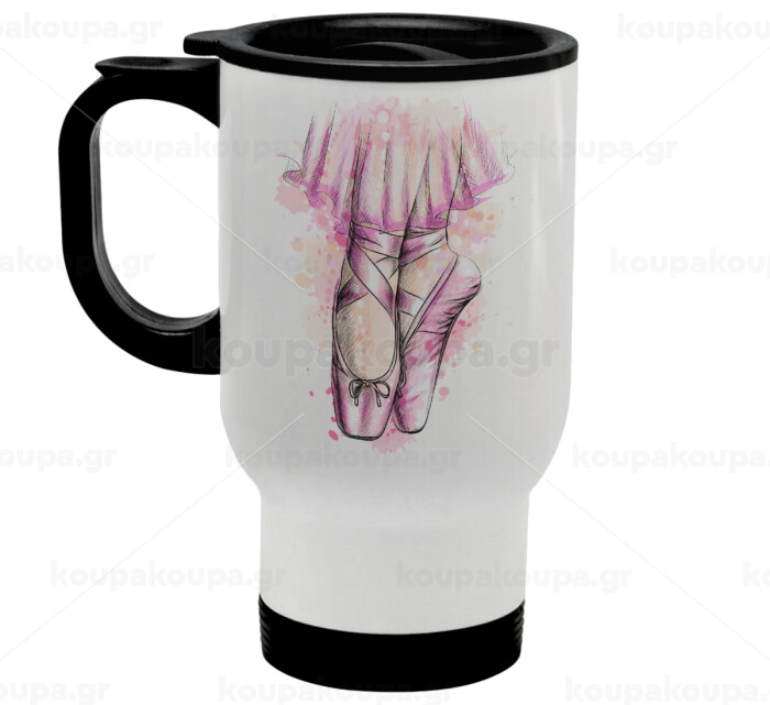 Ballerina shoes, Stainless steel travel mug with lid, double wall white 450ml