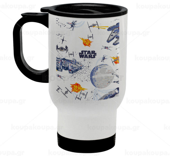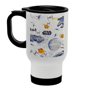 Star wars drawing, Stainless steel travel mug with lid, double wall white 450ml