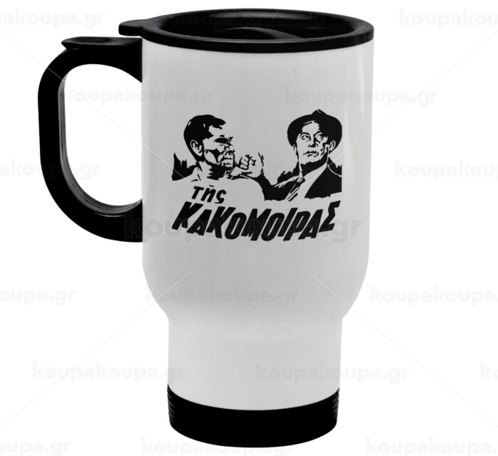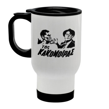 Tis kakomoiras, Stainless steel travel mug with lid, double wall white 450ml