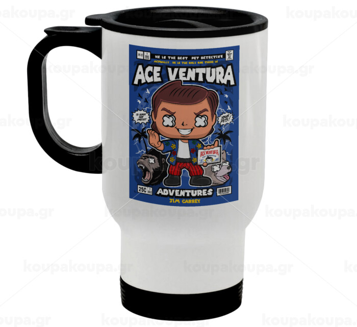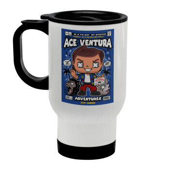 Ace Ventura: Pet Detective, Stainless steel travel mug with lid, double wall white 450ml
