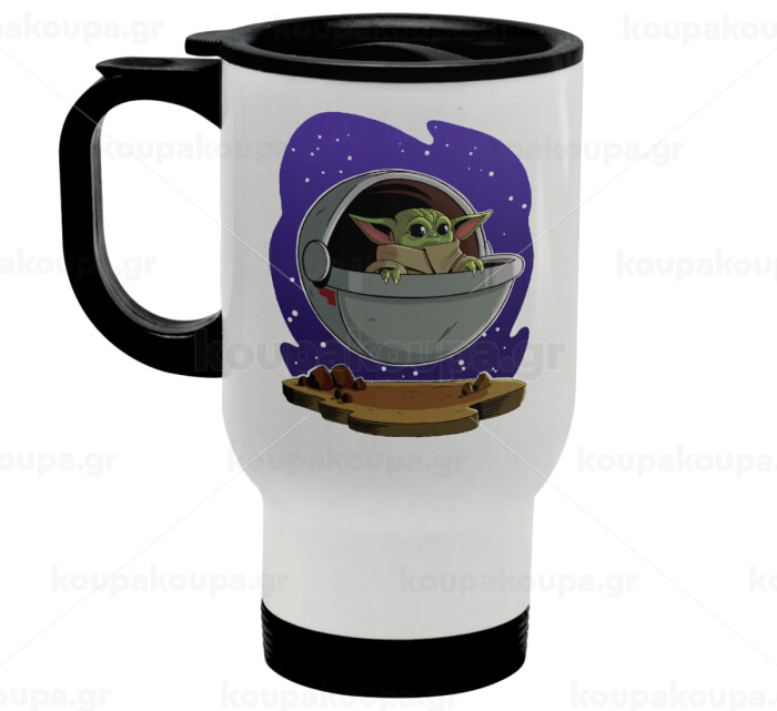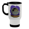 Baby Yoda mandalorian, Stainless steel travel mug with lid, double wall white 450ml