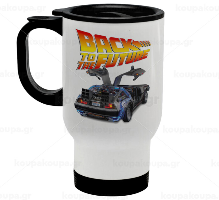 Back to the future, Stainless steel travel mug with lid, double wall white 450ml