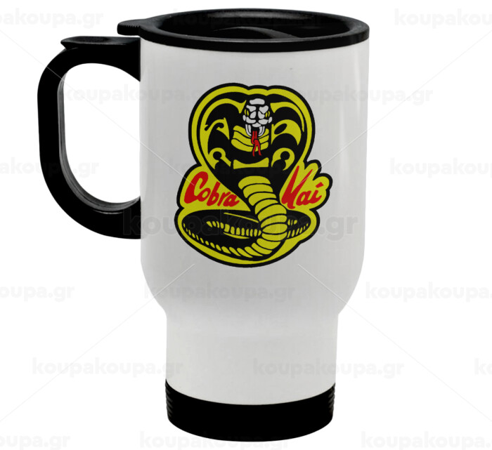 Cobra Kai Yellow, Stainless steel travel mug with lid, double wall white 450ml
