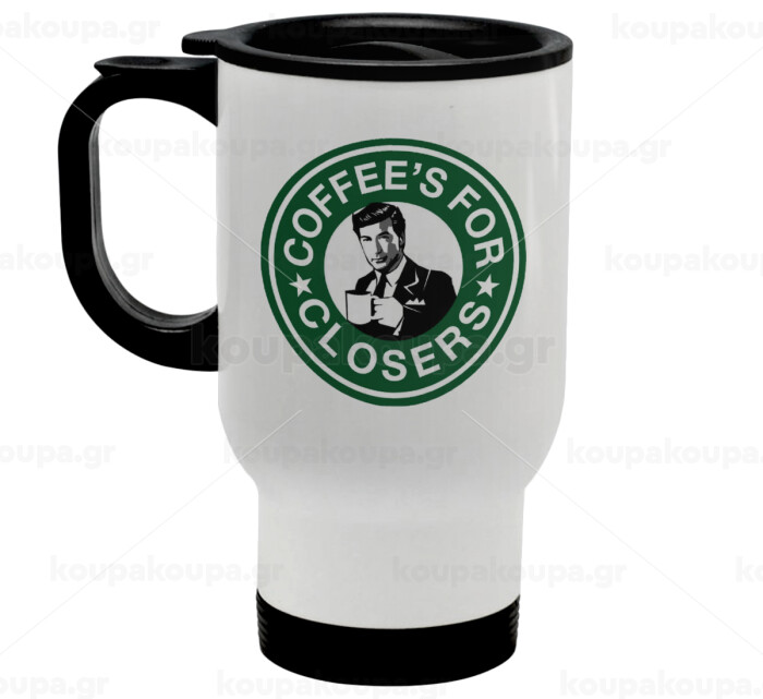 Coffee's for closers, Stainless steel travel mug with lid, double wall white 450ml