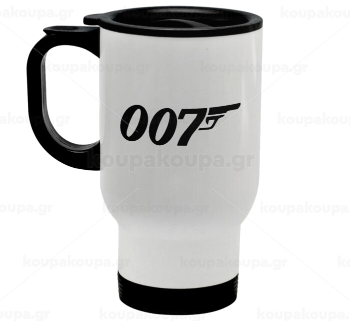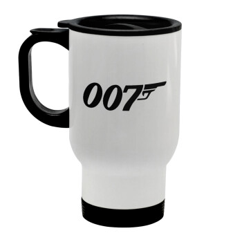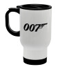 James Bond 007, Stainless steel travel mug with lid, double wall white 450ml