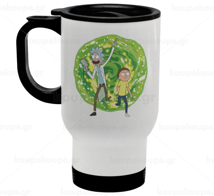 Rick and Morty, Stainless steel travel mug with lid, double wall white 450ml