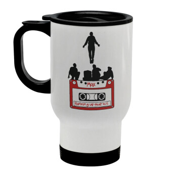 Running up that hill, Stranger Things, Stainless steel travel mug with lid, double wall white 450ml