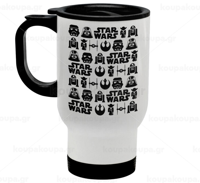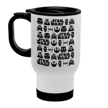 Star Wars Pattern, Stainless steel travel mug with lid, double wall white 450ml
