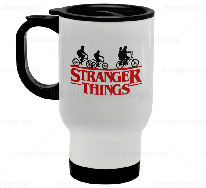 Stranger Things red, Stainless steel travel mug with lid, double wall white 450ml