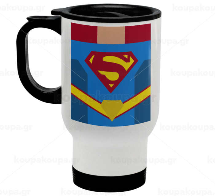 Superman flat, Stainless steel travel mug with lid, double wall white 450ml