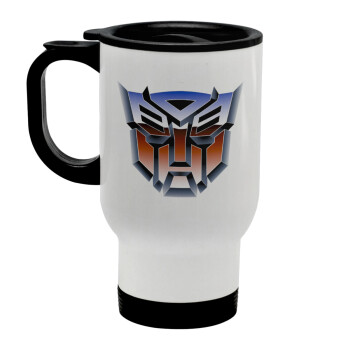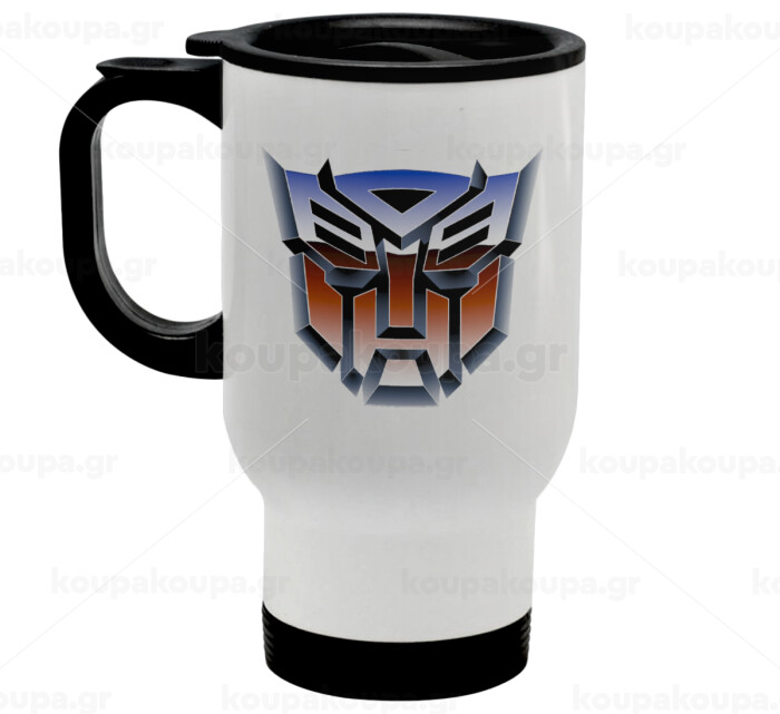 Transformers, Stainless steel travel mug with lid, double wall white 450ml